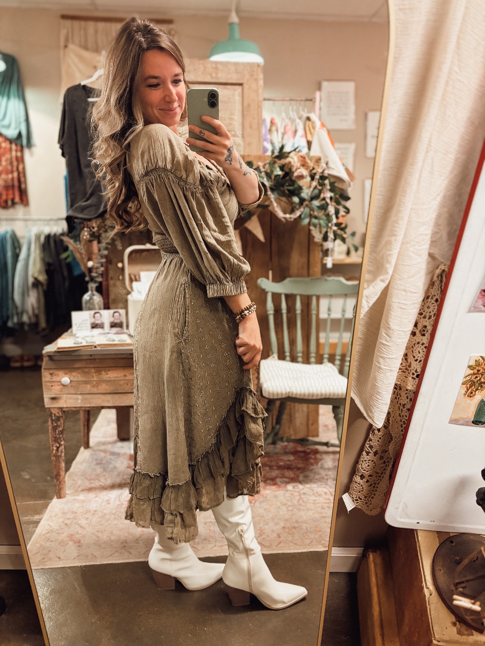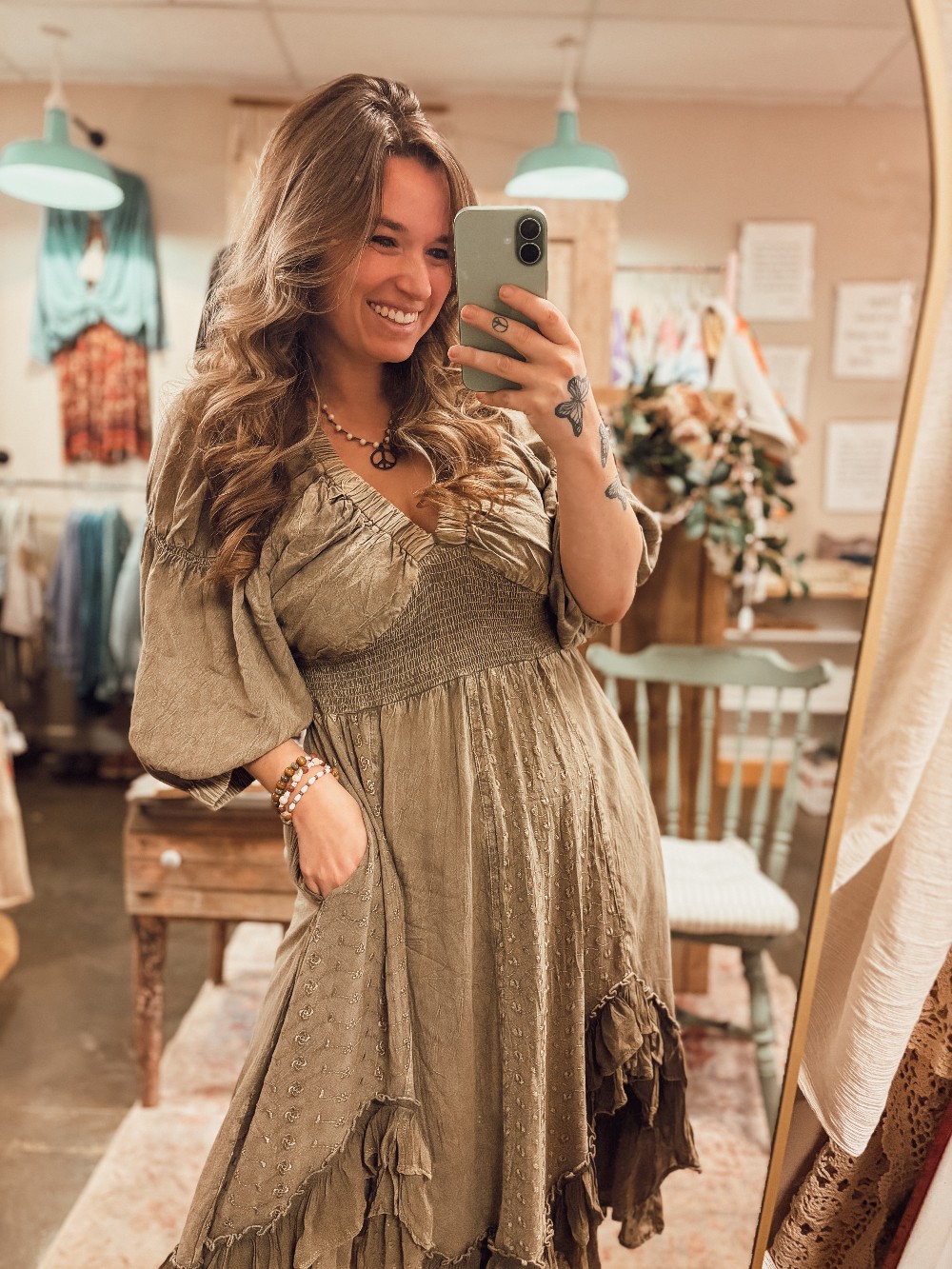 Home / Dresses (Hull St) / Boho Gray Ruffled Dress