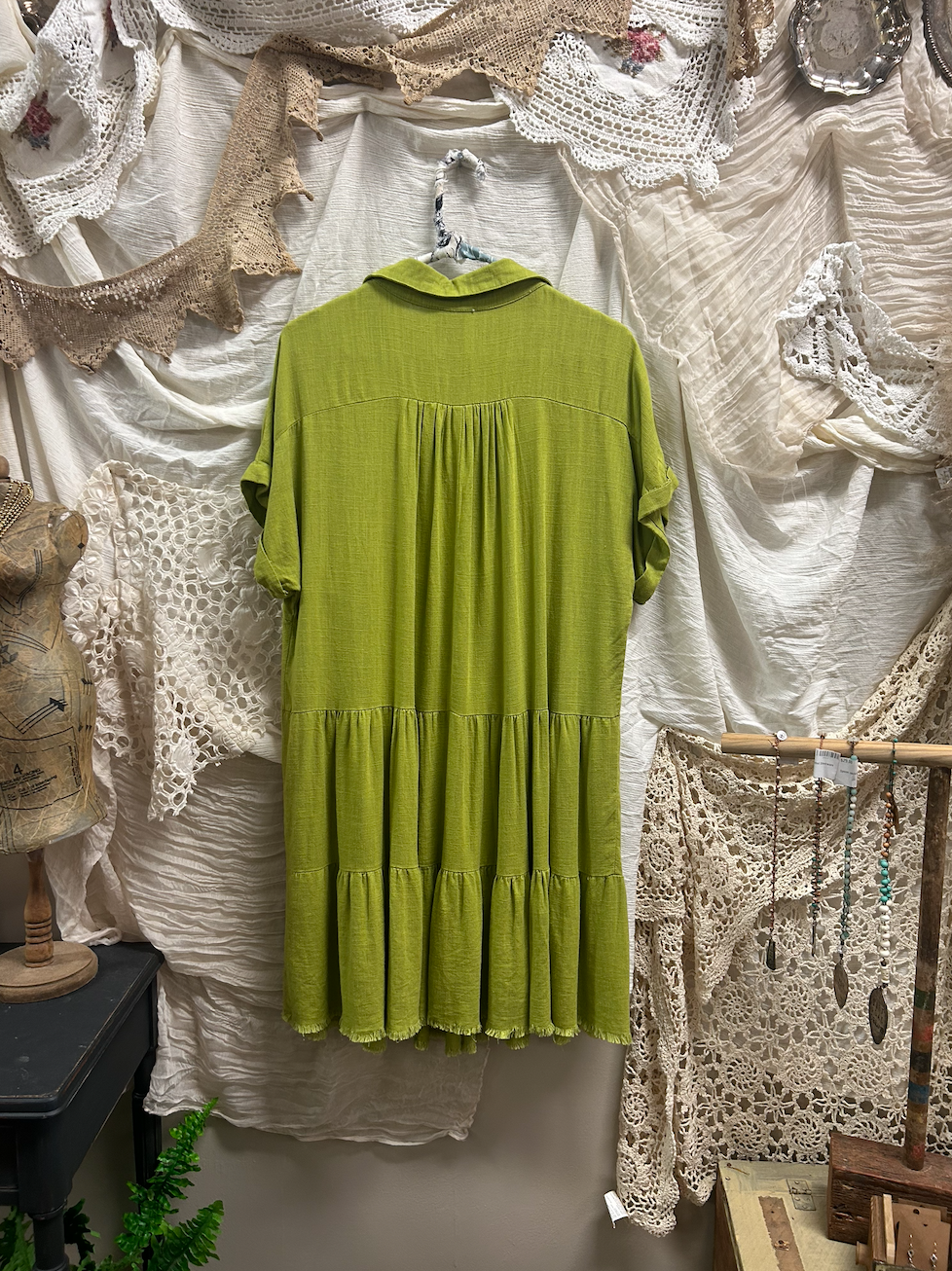UnGee Apple Green Linen Blend Midi Dress SMALL
